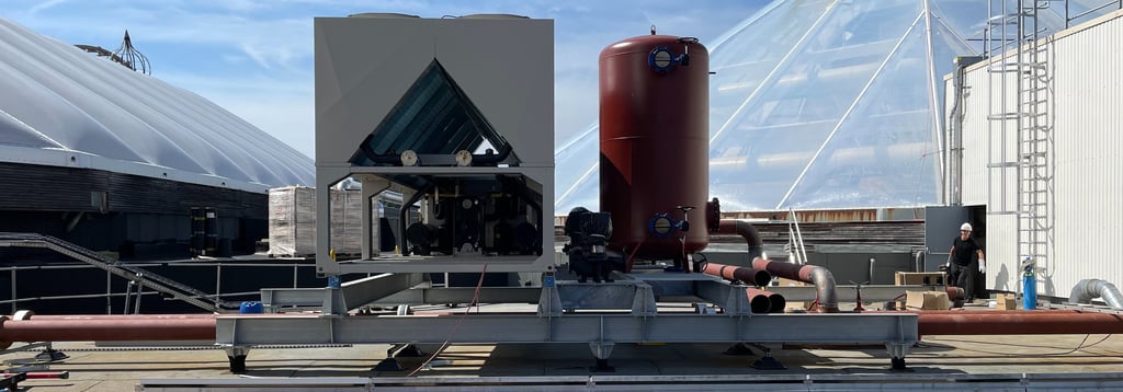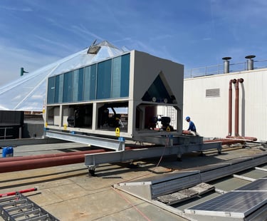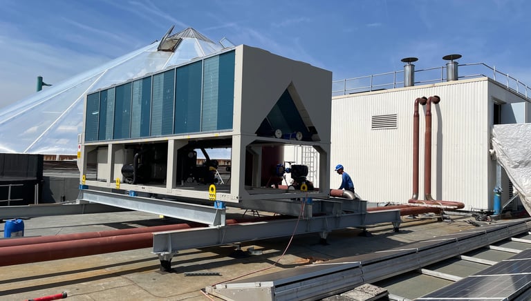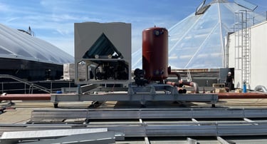 Projet : Structures supports & équipements d'accès et d'exploitation pour Installations sanitaires et thermiques sur toiture Dôme Aqualibi.