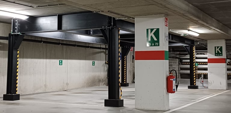 Projet : Renforcement sous dalle de local technique - Structure support 5 adoucisseurs masse unitaire à vide 2T.